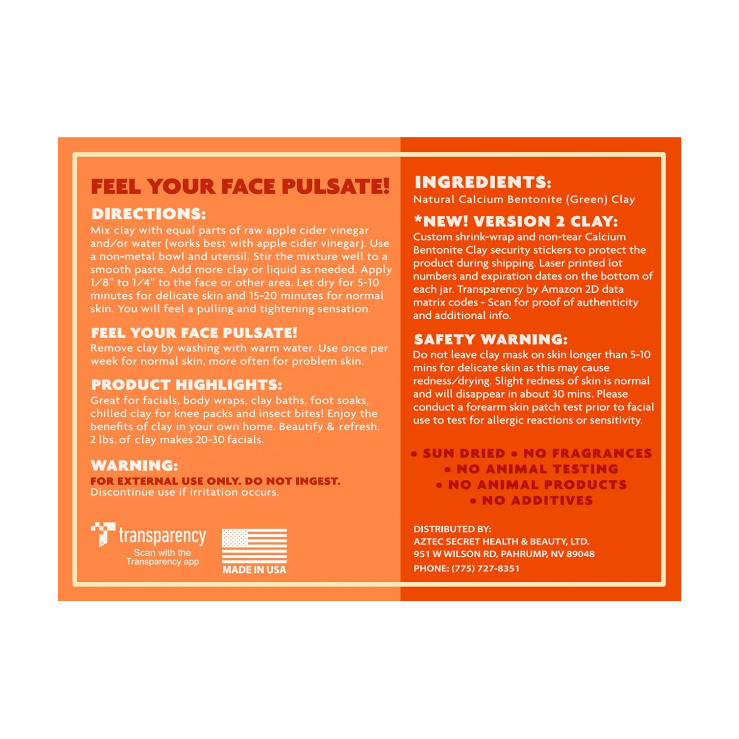 - Shrink-wrapped with a non-tear Calcium Bentonite Clay security sticker on the lid