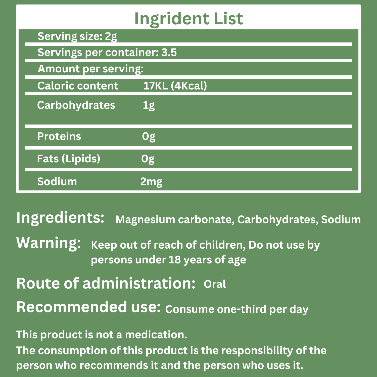 Magnesium is an essential mineral that plays a vital role in over 300 biochemical reactions in the body, including muscle function, nerve health, energy production, and bone strength. Our Carbonato de Magnesio Puro is sourced from high-quality, natural ingredients, ensuring purity and effectiveness.